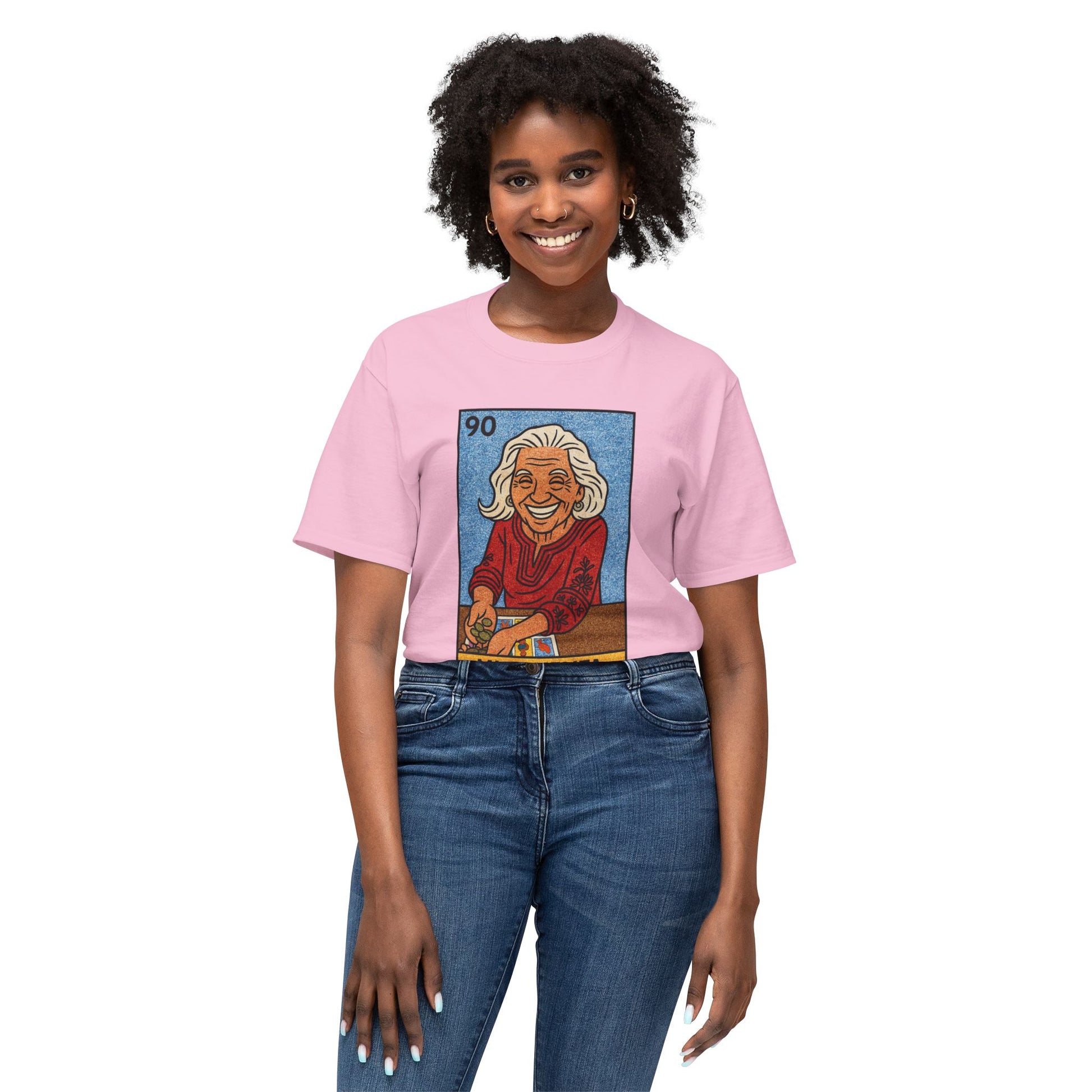 This tee carries warmth like a memory. Fronted with a colorful, vintage-style Lotería card that reads “Mi Abuelita,” the illustration captures a smiling grandmother offering a bowl — a small, everyday act made sacred. Soft, lightweight cotton drapes easily for relaxed days at home, family dinners, or neighborhood gatherings. Wear it when you want to feel rooted in stories, to spark conversations about recipes, traditions, or the person who taught you how to laugh. It’s a quiet shout of affection — familiar, bright, and full of small rituals that matter.
